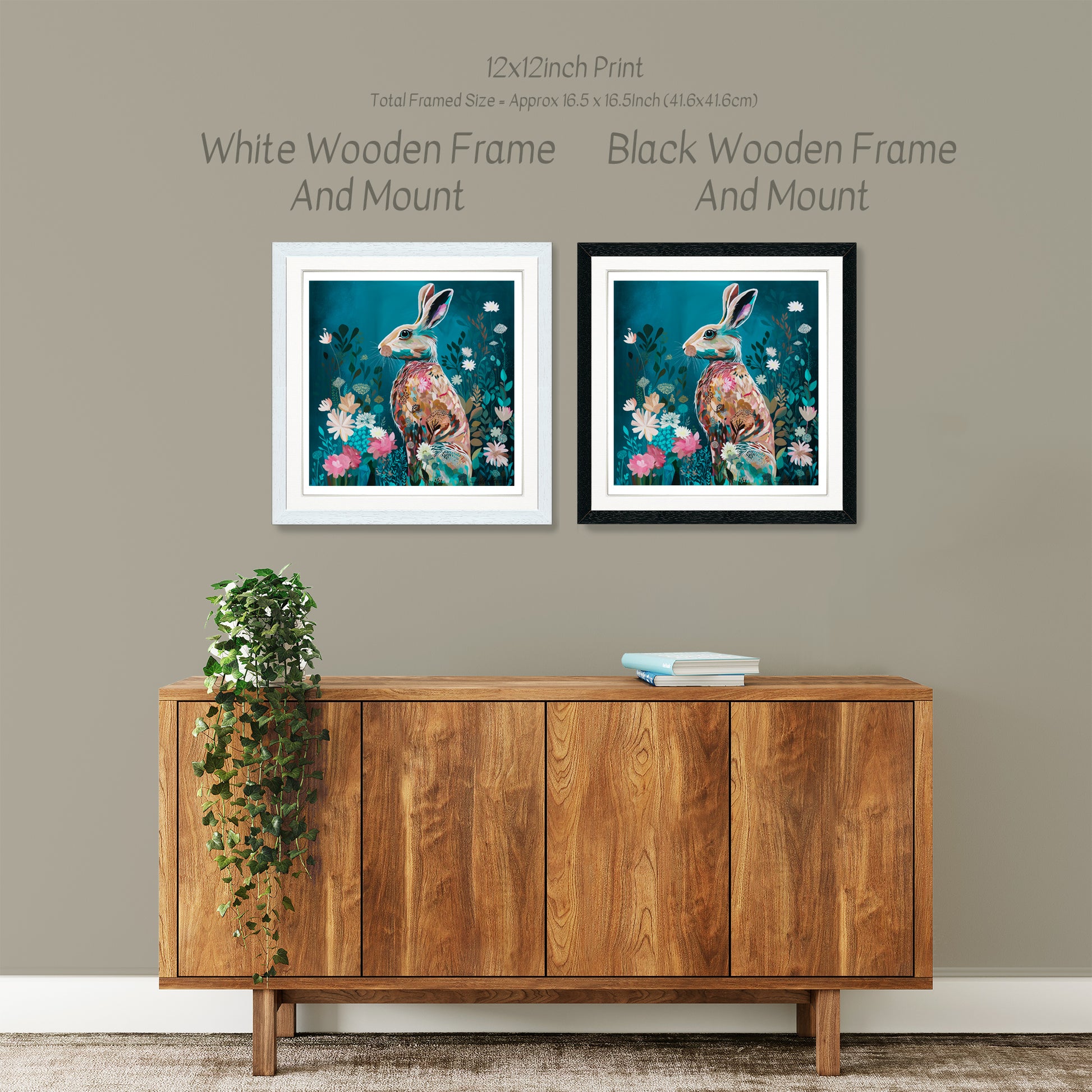 Framed options are professionally mounted and finished in a solid wood frame (white or black).